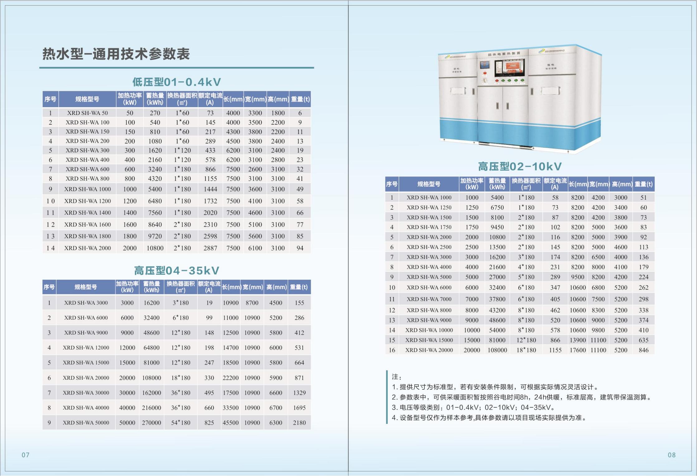 固體電蓄熱系統(tǒng)選型表